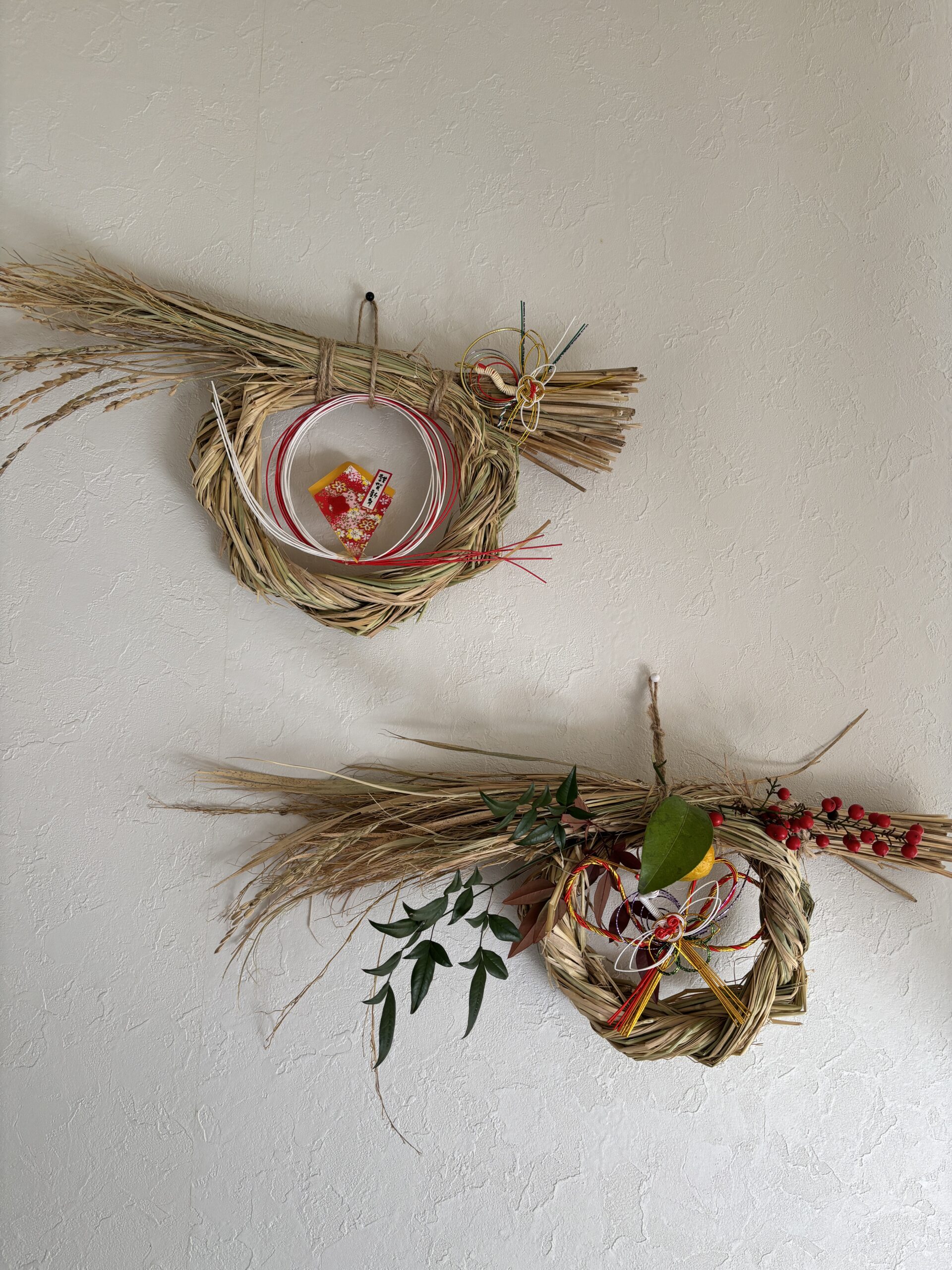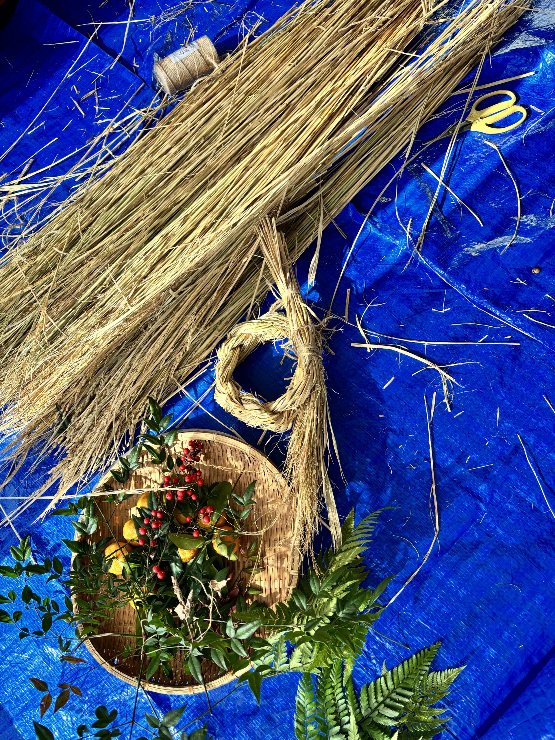 例年はレモングラスで作りますがで今年は藁で作りました。シンプルしめ縄です。なかなかの出来❣️
