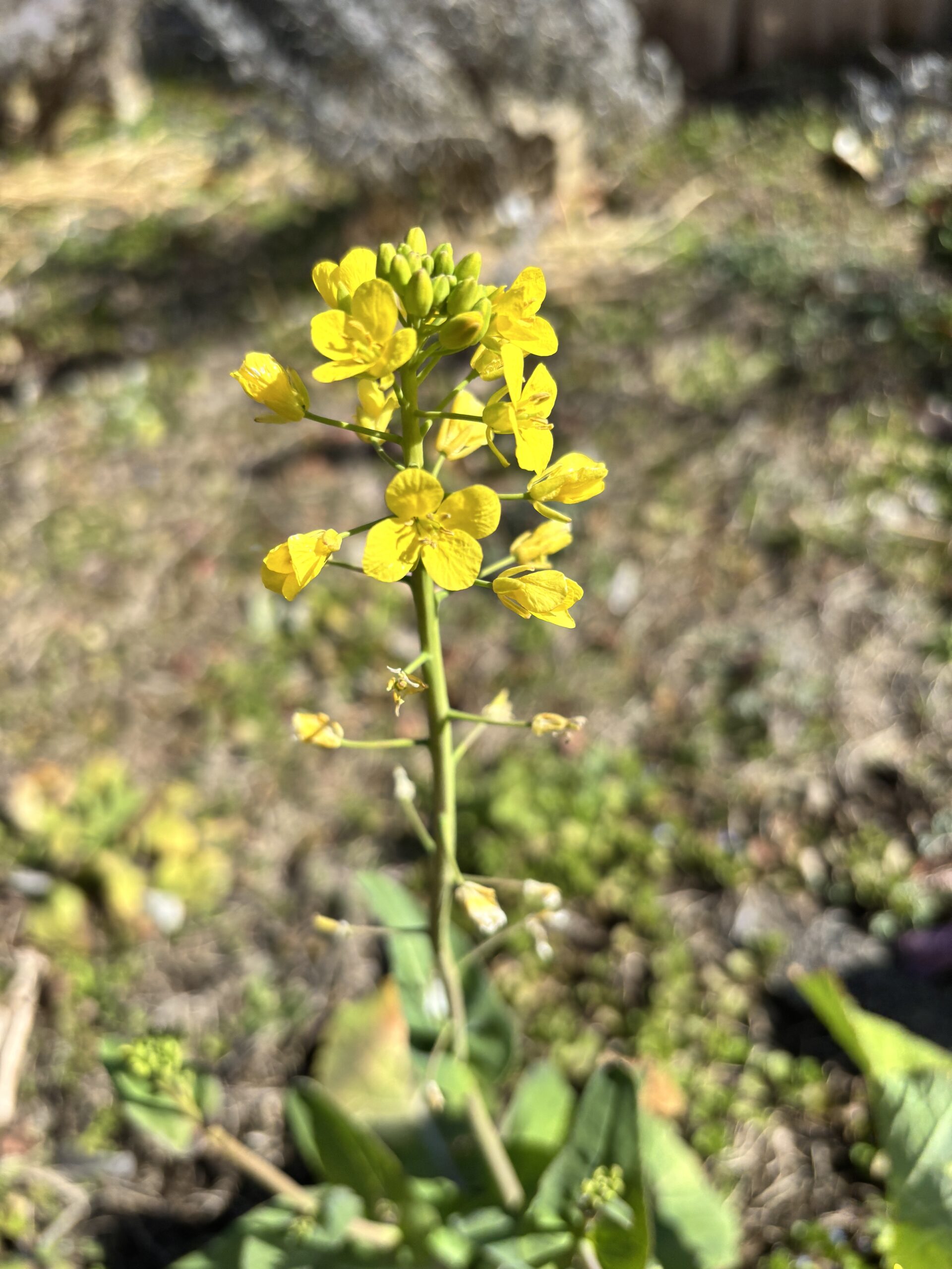 ハーブ畑のセントジョンスワートに光の妖精が視えます〜春に向けてエネルギーを注いでいるようです。そいえば、セントジョンズワートは天然のトランキライザー(心の安定剤)で「サンシャイン・サプリ」と言われています〜。菜の花が咲いてハーブ畑が少し華やかです❣️