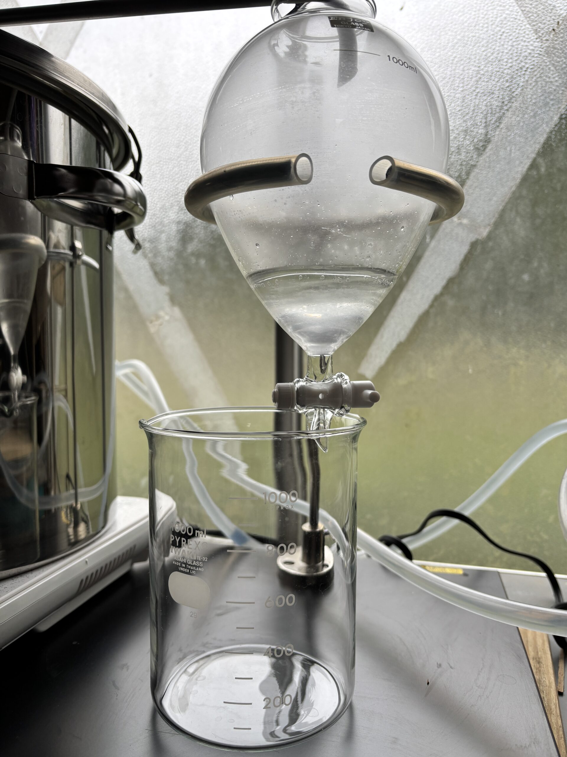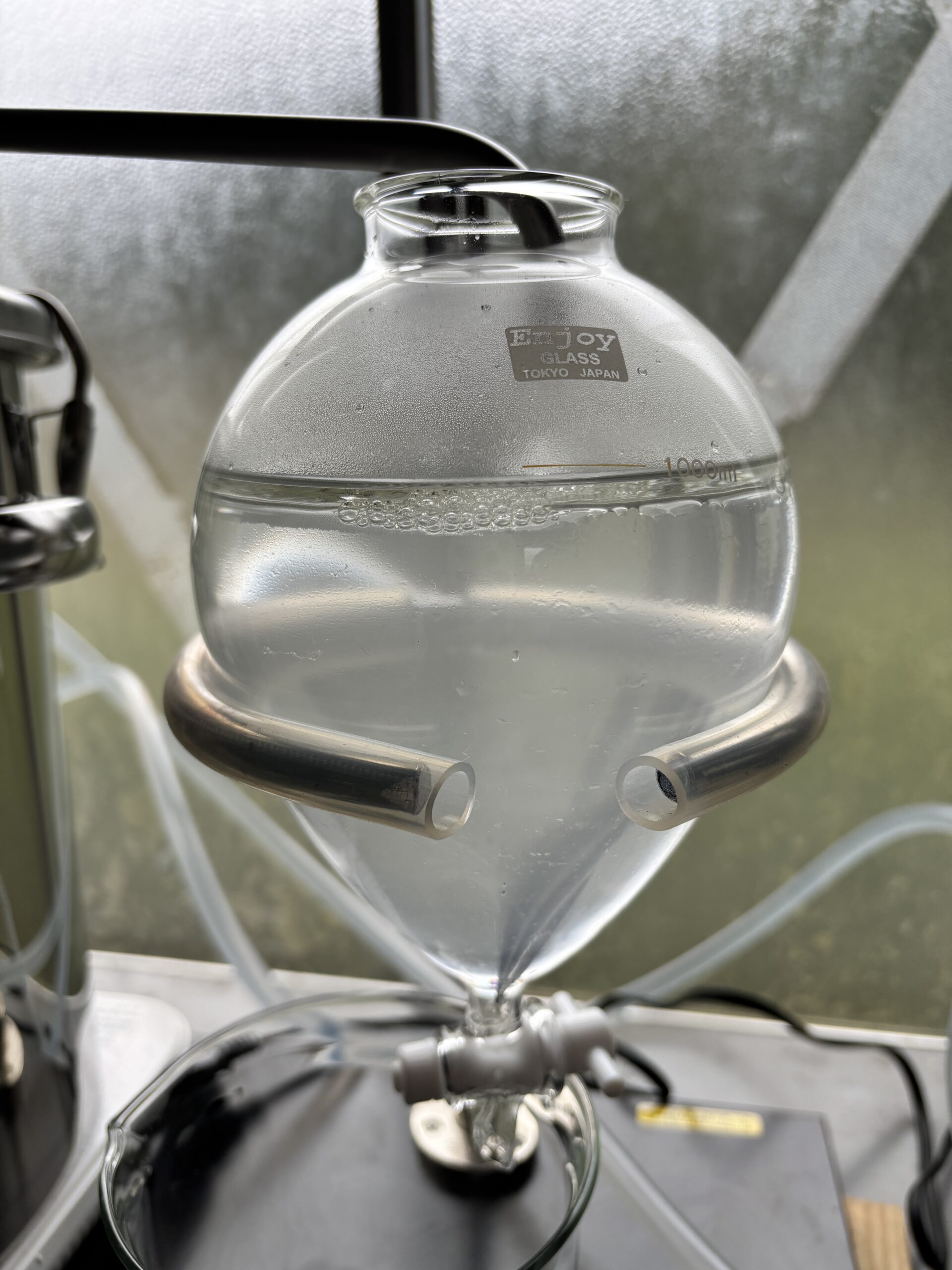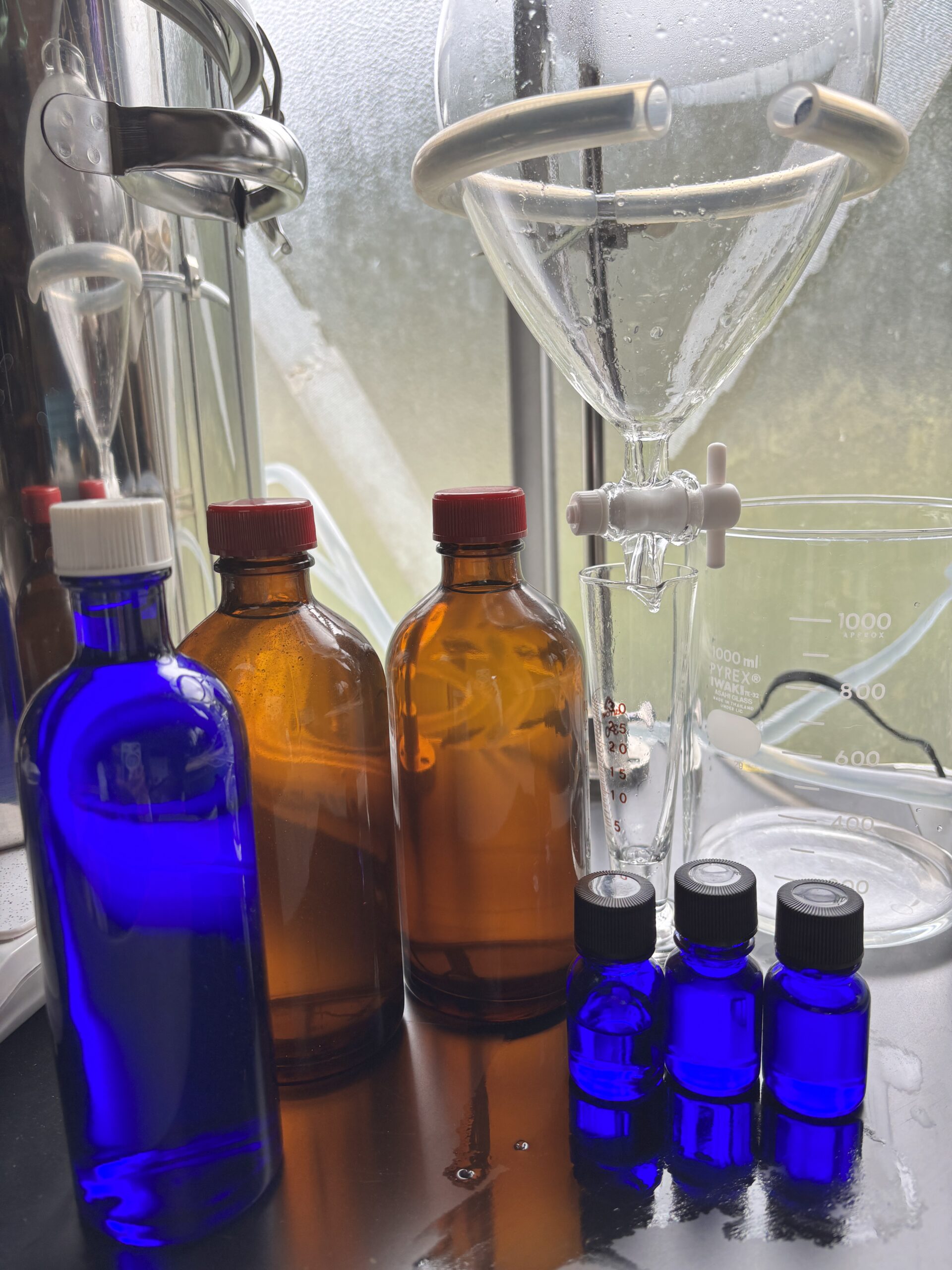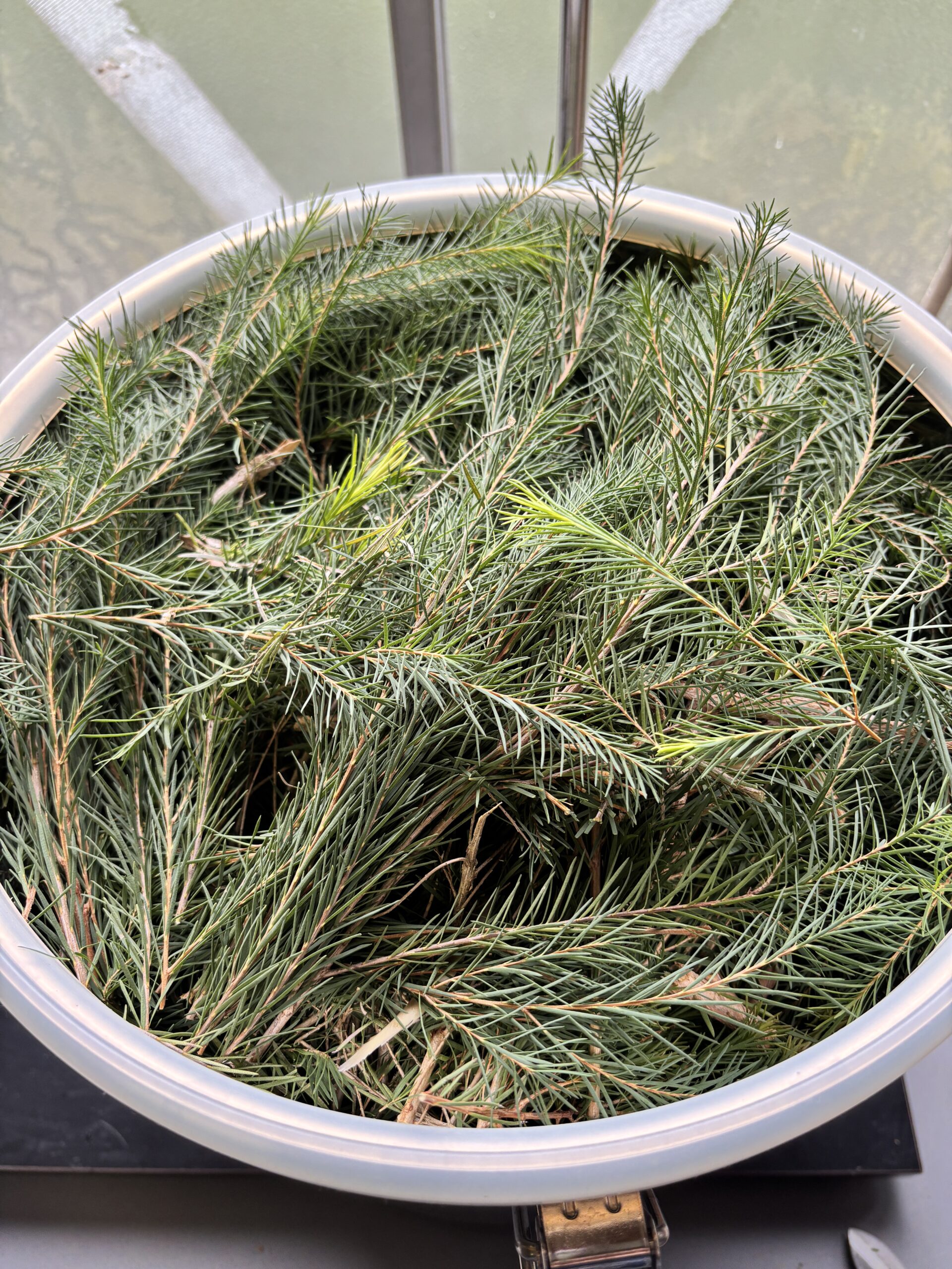 ティーツリーの木が大きくなってワサワサと道路にはみ出しているので剪定しました。切り取った枝葉は蒸留!開始から1時間半ほどでハイドロゾルが1000mlと精油(エッセンシャルオイル)が30mlほど収穫できました。これまでに、九州ミント、和ハッカ、月桃、シークヮーサーと蒸留しましたがティートリーがいちばん多く精油分を含んでいました。このティーツリーのハイドロゾルと精油の抗菌力で今年の冬は乗り切れます〜(^-^)v。