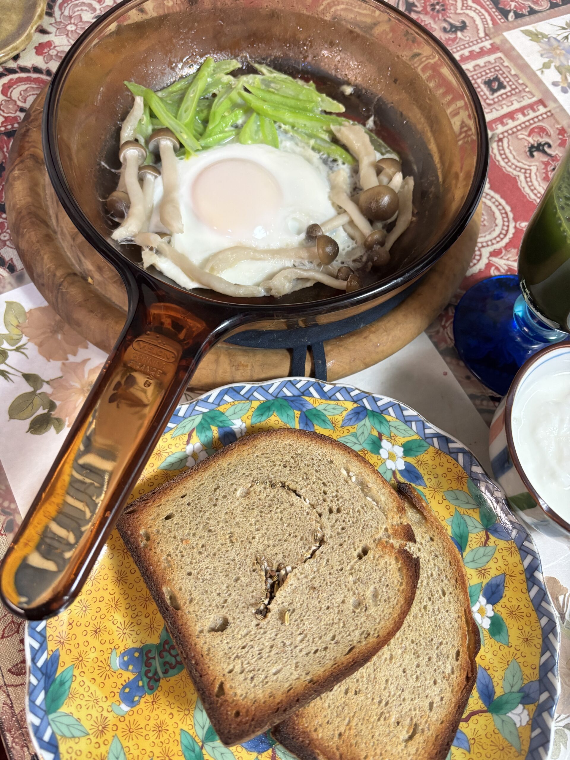 倉庫を掃除していたらガラスのフライパン発見です。わぁ〜懐かしい!昔、今は亡き叔母が使っていた昭和のガラス製フライパンです。確か鍋もあったようですが〜発見できませんでした。今年に入ってからずっと、朝食用に使っています。初めのうちは焦げついて使いづらかったですが最近はバッチリ使いこなせるようになりました。お気に入りです〜(^ ^)。 ちょこっと情報→ガラスのフライパンはVISIONSというメーカのもので、検索するとメルカリなどで販売していました。 by kogawachi