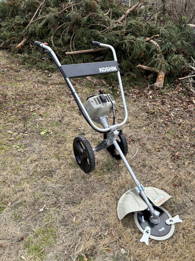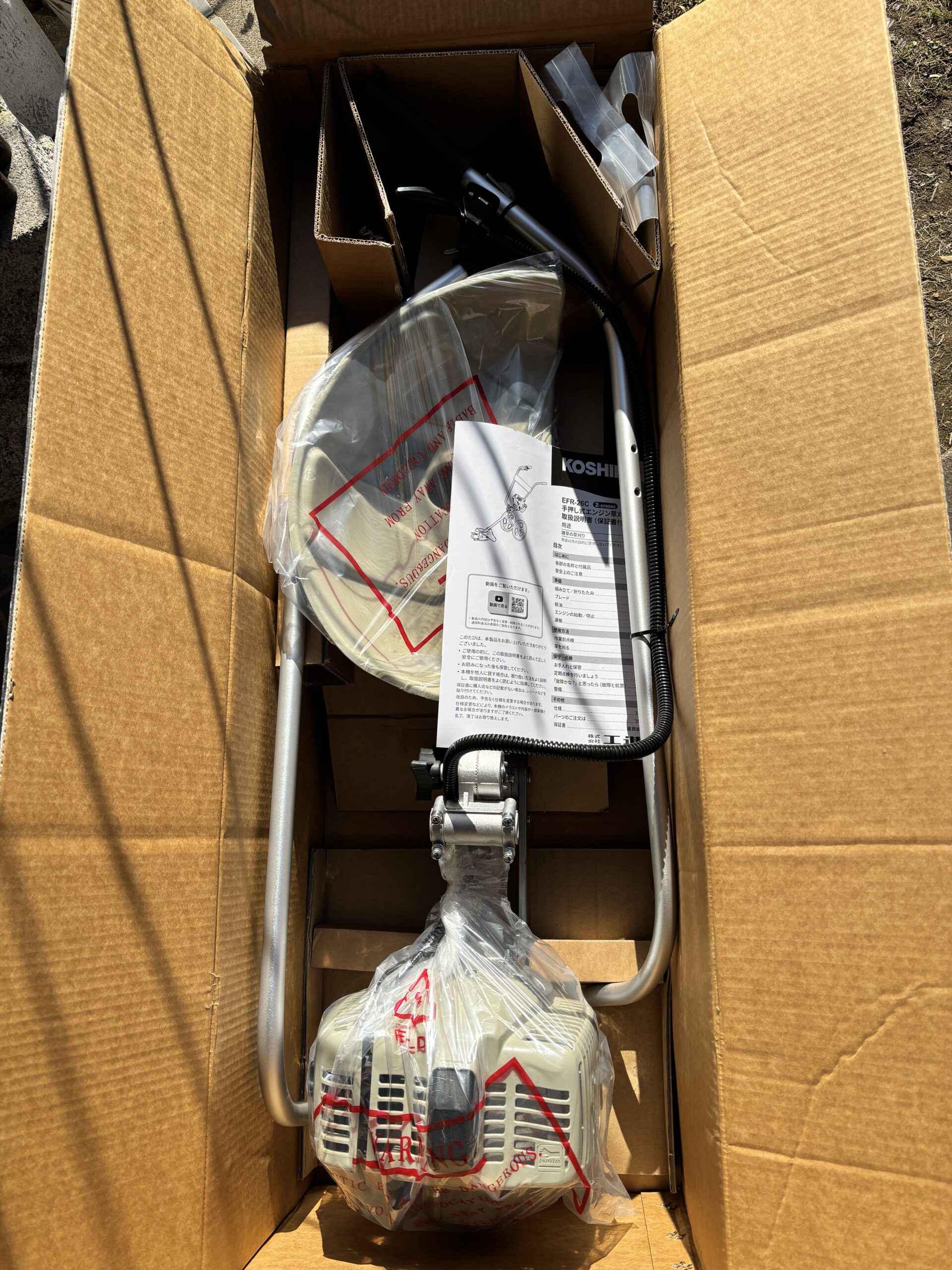 肩掛け草刈機もあるのですが〜この草刈機は「押すだけでラクラク草刈!、シニアや女性におすすめ!長時間の草刈りにも、もう疲れない!」とのキャッチフレーズに惹かれて、思い切って購入しました〜。組み立てるのに二人で30分ほどかかりました。早速、オイルを入れて始動開始。最初なかなか、エンジンがかからなかったですが〜オイルが程よく回ったのか、その後はとても、簡単にエンジンがかかるようになりました。軽くて使い勝手がいい草刈機です。買ってよかった〜✌️。加減が分からず、激しくやりすぎて白い羽刃が3個のうち2個折れて無くなりました。本日の教訓は絡まりそうな蔦系の草はあらかじめ排除しておく事と替刃のストックは必須です。