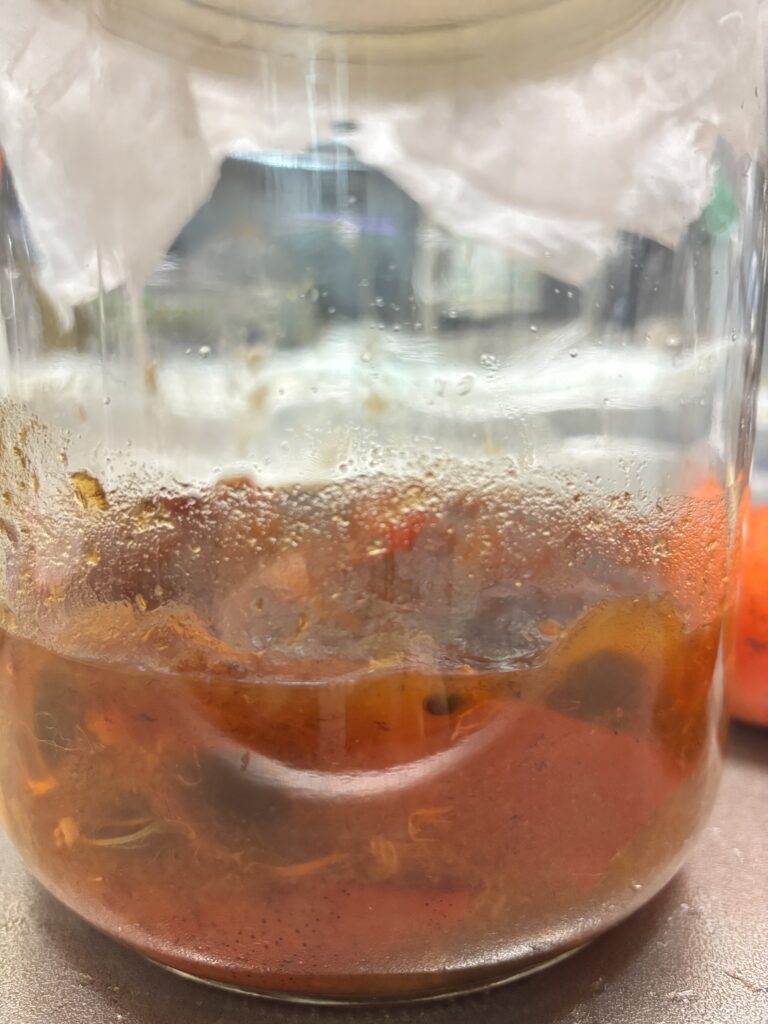 熟した柿のヘタをとって容器の中で潰して発酵を待ちます。千切りのキャベツに2%の塩を絡めてぎゅうぎゅうに瓶に詰め蓋をします。どちらもプクプクと気泡が出るまで数日待ちます〜気泡は発酵の合図です。経過は追ってお知らせします〜(^-^)v