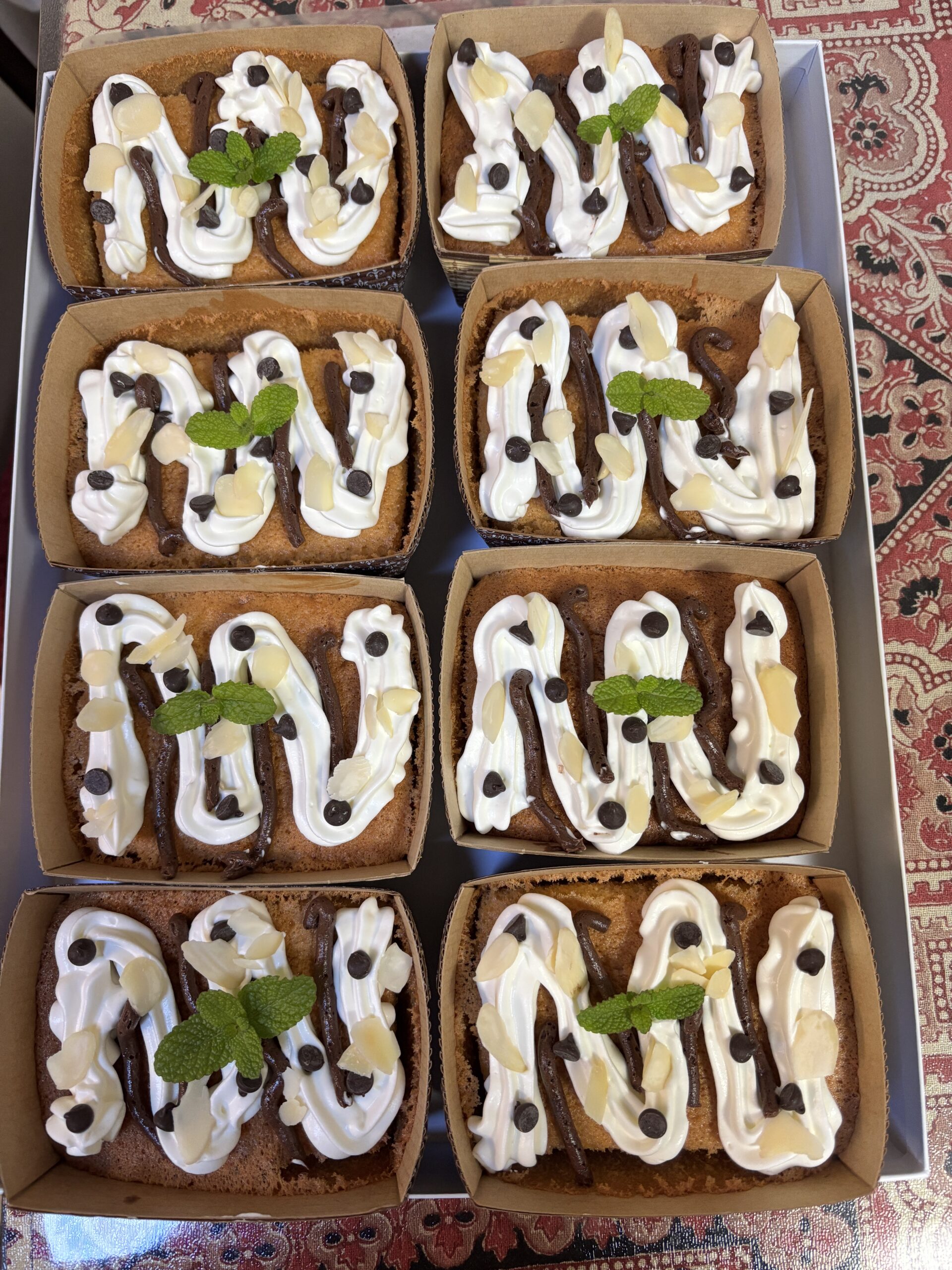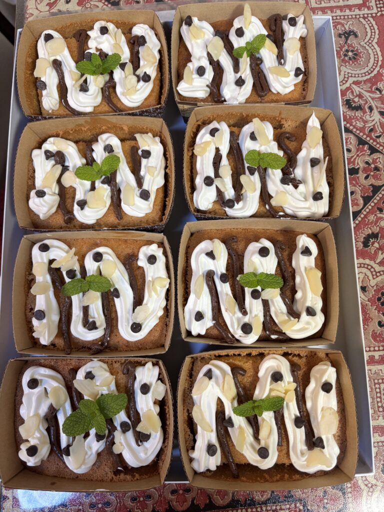 いつも、野菜をいただいてる7人家族の農家さんにお礼に差し上げました。チョコチップとアーモンドスライスをトッピングしました〜甘いものには目がないスタッフの石ちゃんは「美味しい美味しい」とパクパク食べてました〜(^-^)v