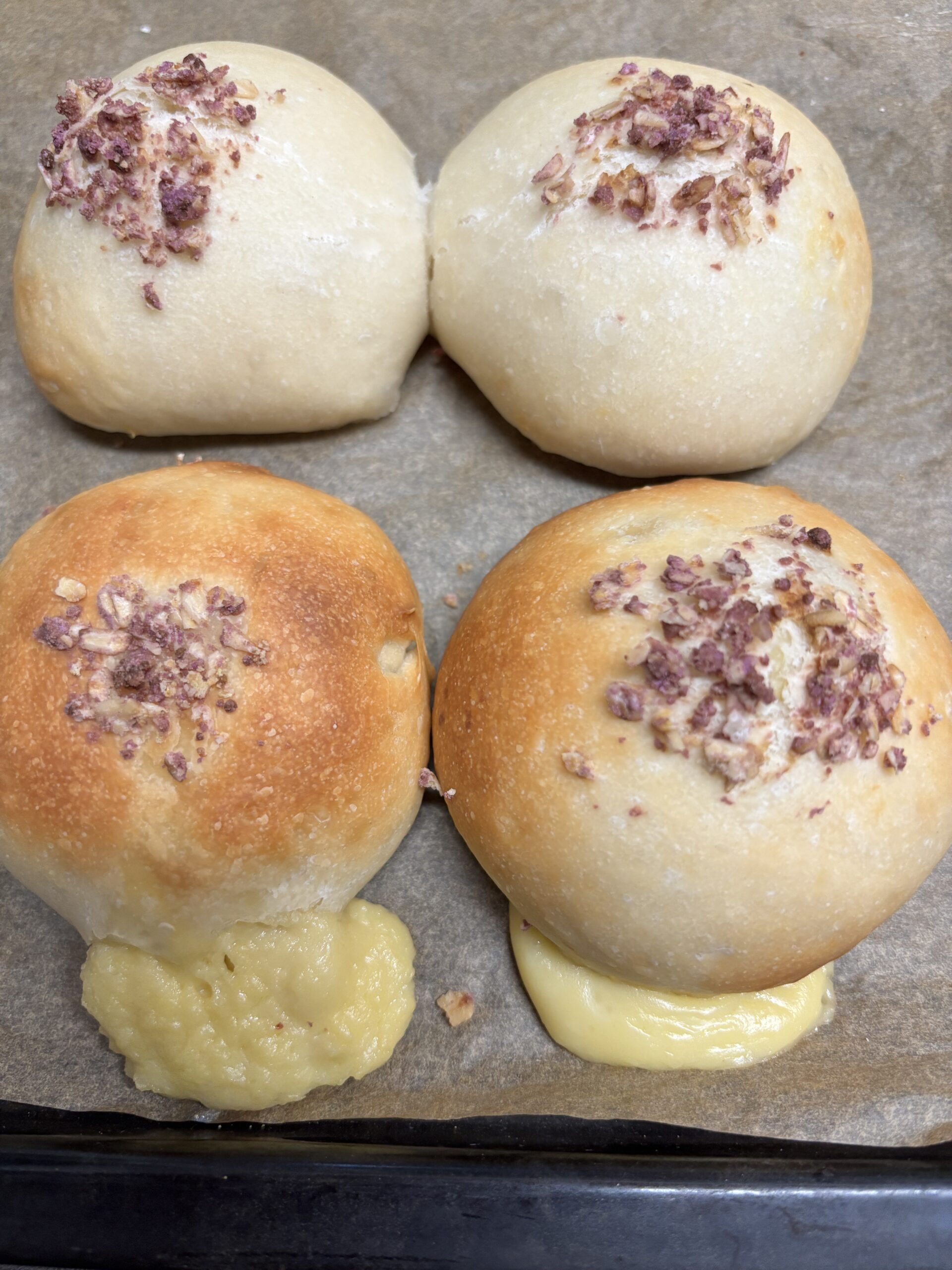 本日は雨で畑仕事もないので、久しぶりに白神こだまの酵母でパンを焼きました。生地がふわふわでとても美味しく焼けました。クリームパンはちょっとクリームがはみ出しちゃいましたけどご愛嬌で〜す(^-^)