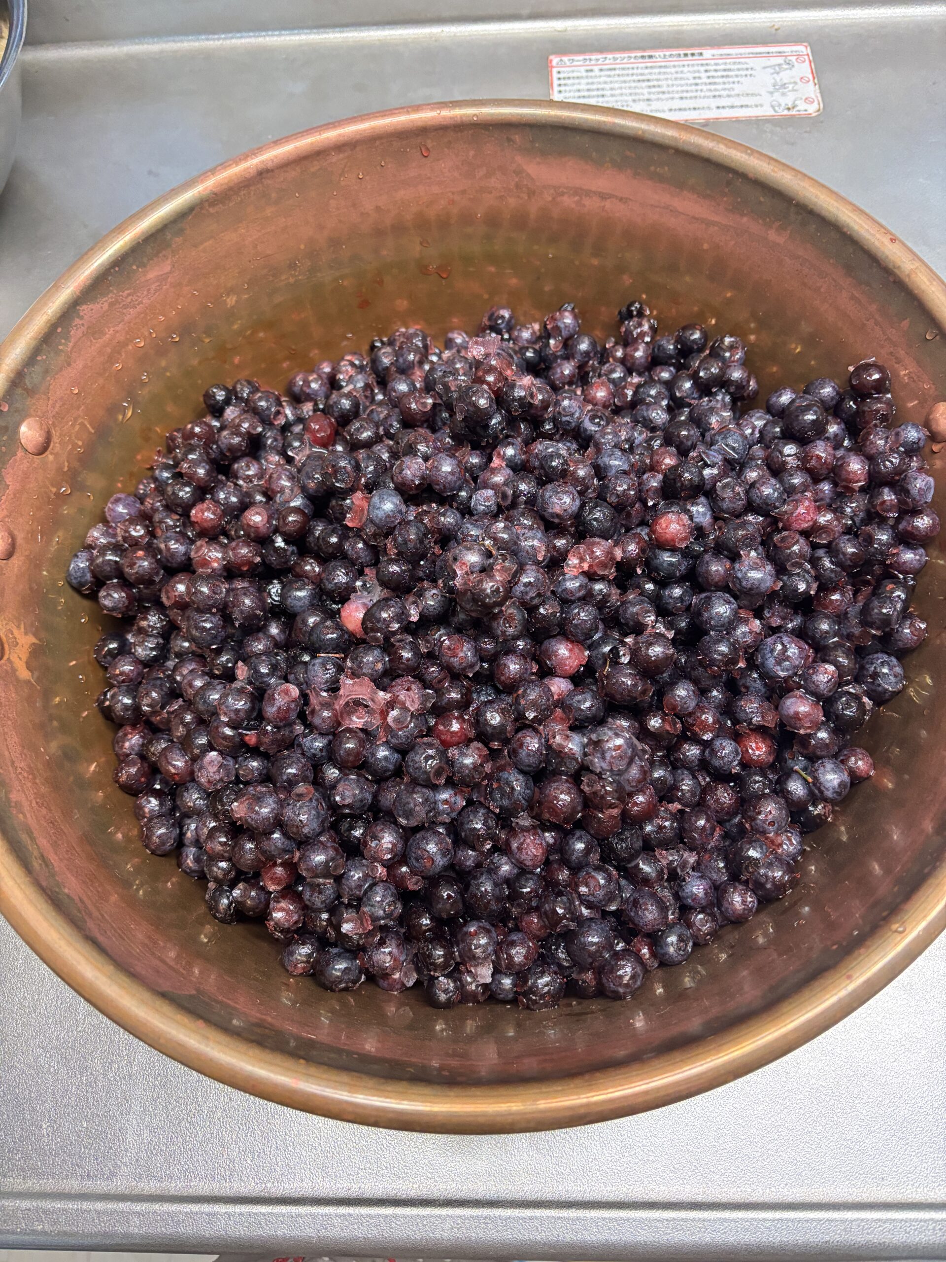 銅鍋でグツグツと煮て種子島の粗糖とシークヮーサーの果汁を入れて美味しいジャムの出来上がりです〜(^-^)v