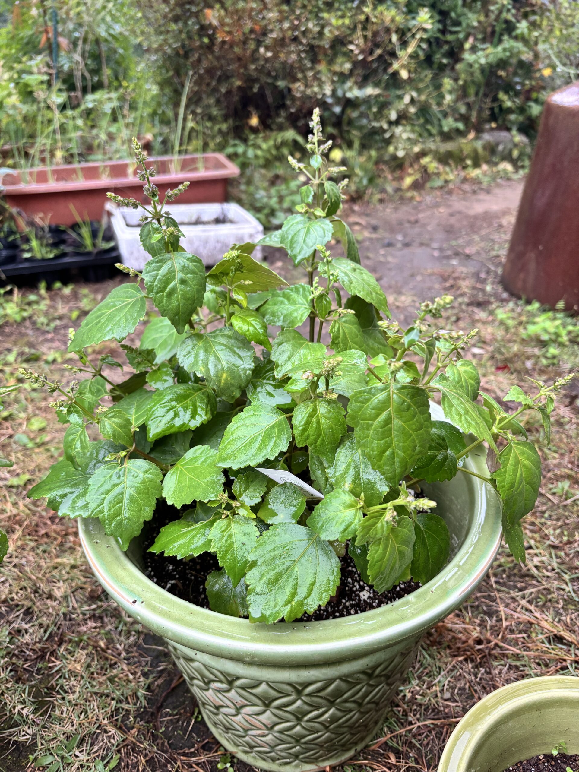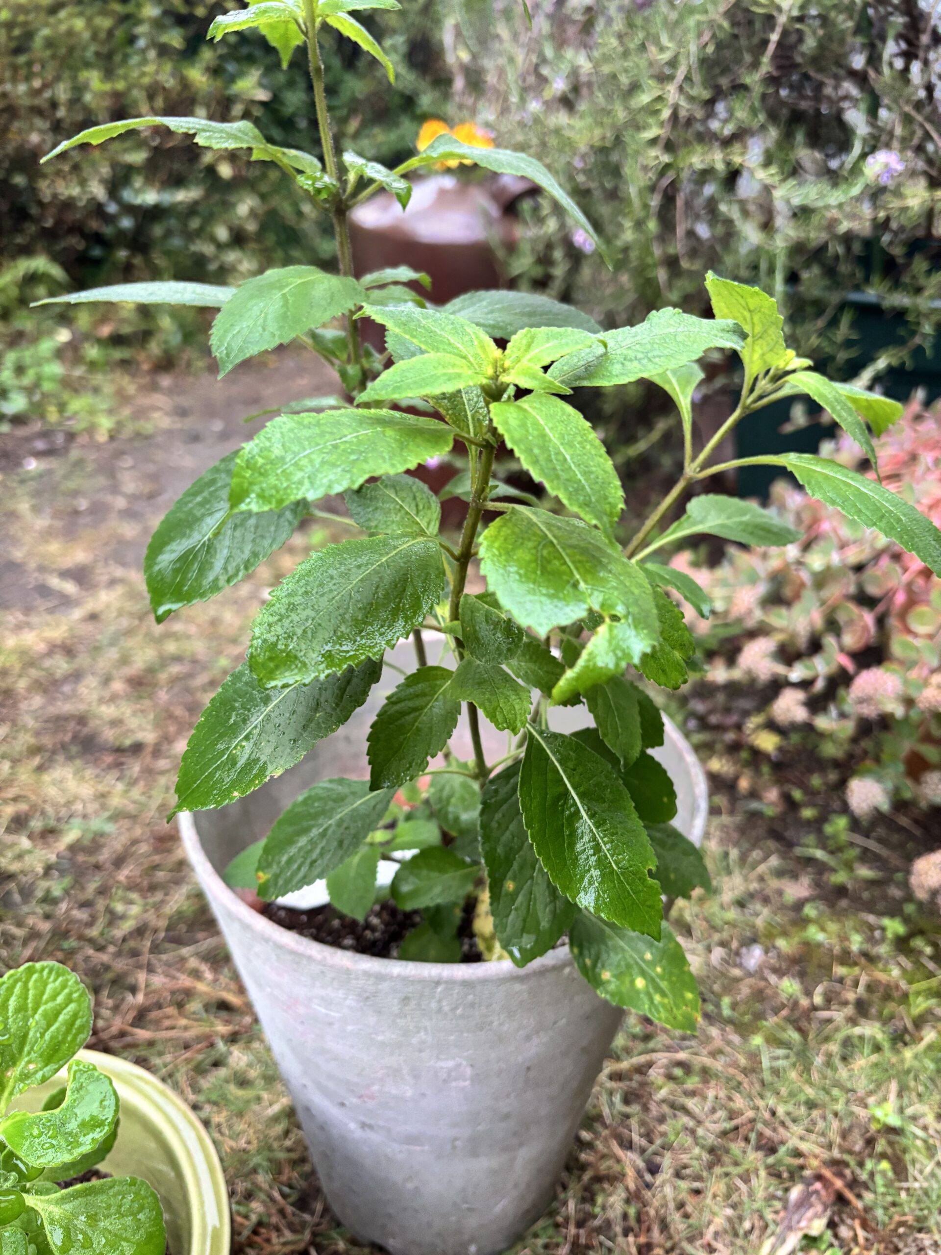 本日ご紹介するハーブはグリンティのパチュリーとヴァナトゥルーシー、2種類とも耐寒性がないので、この冬を乗り切れるか心配です。ちなみにパチュリーの精油は痒み止めやルームスプレーなどを作るときに使っています。心に対してもかなりのサポーターです。