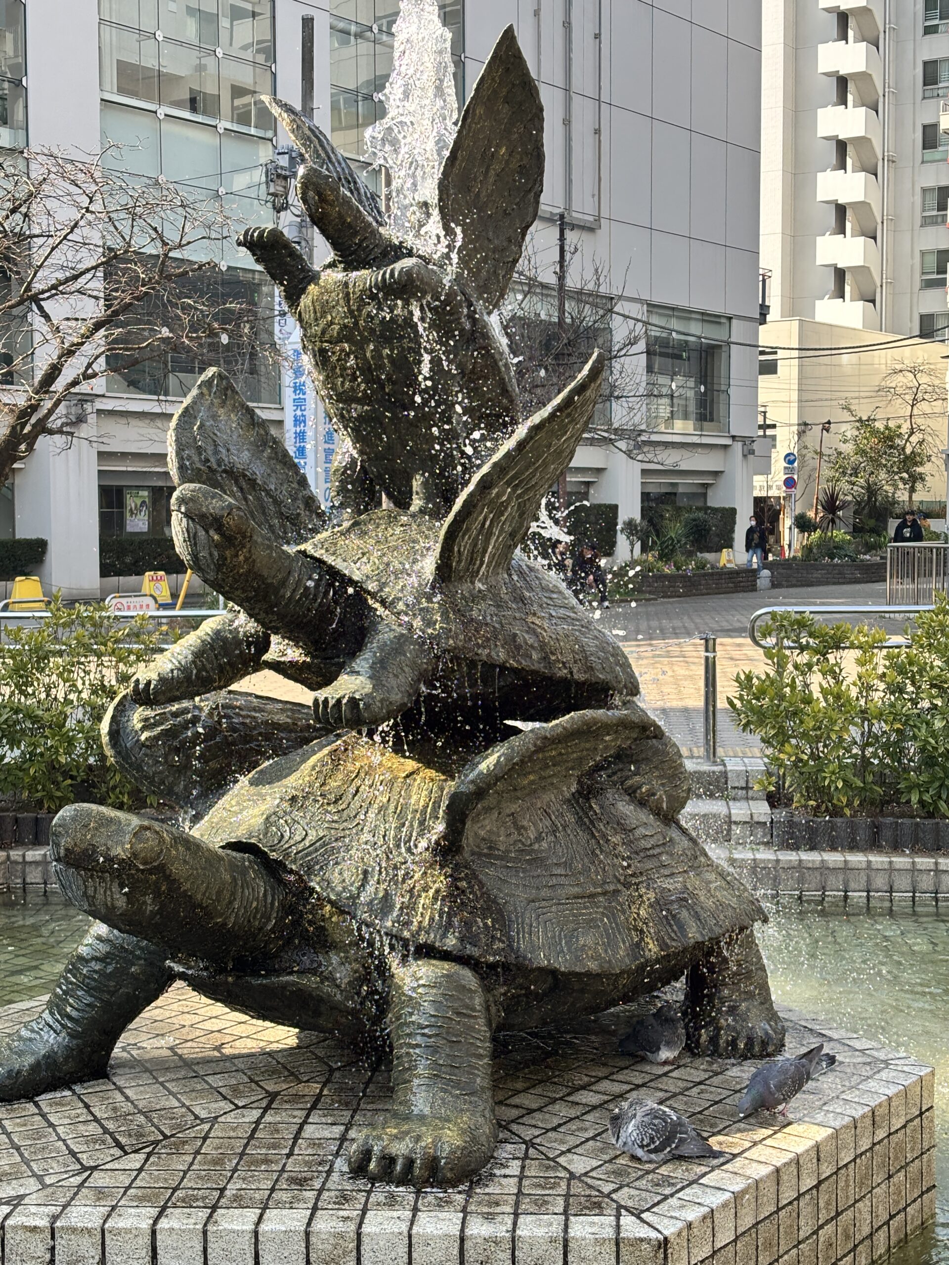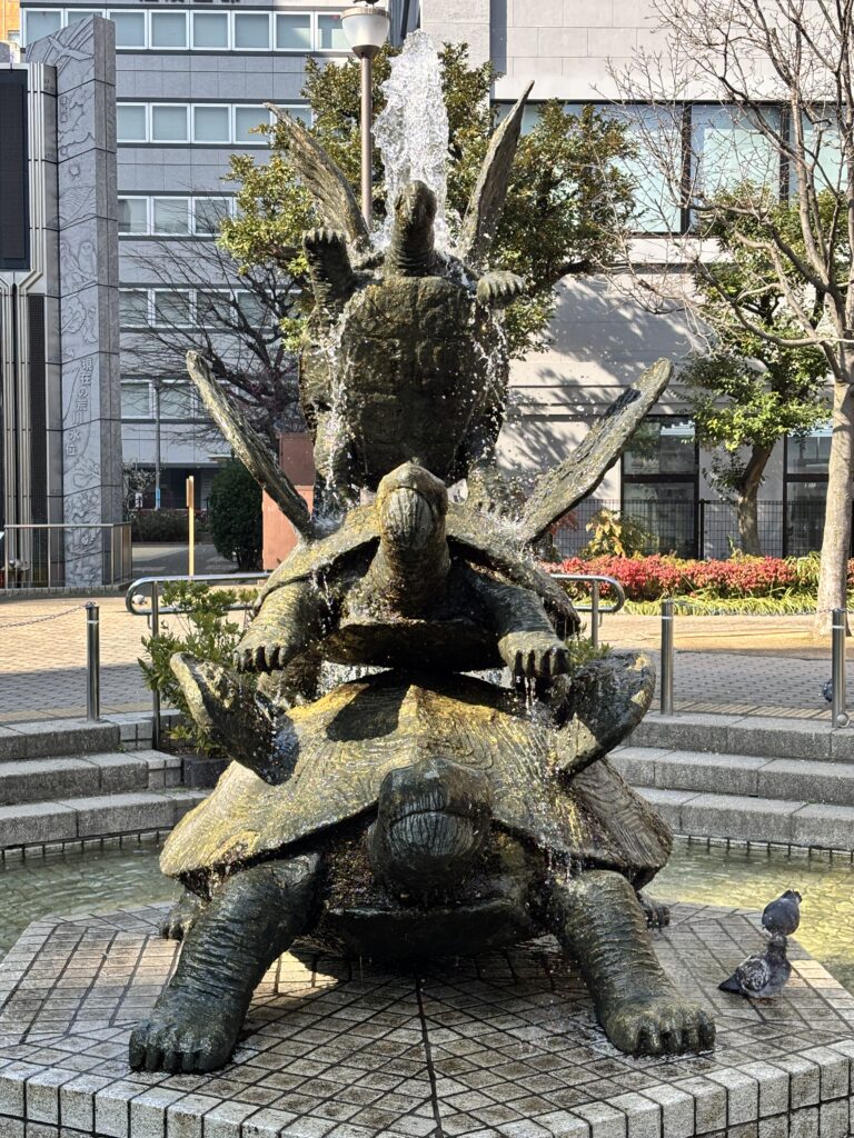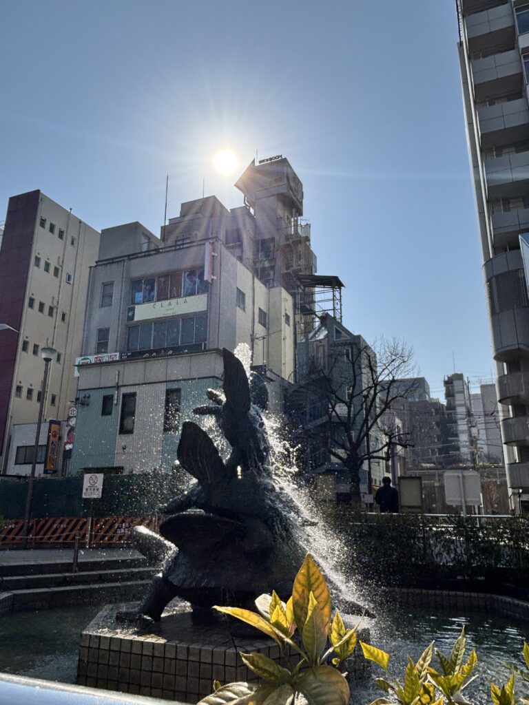数日前の雪から一転して春なみの陽気です。会場からスカイツリーもハッキリと見えます。日本の中枢を担っている大都市の東京都は至る所に結界が張られています。ここ、亀戸は「玄武HANEKAME」が守っています。まるで、ゴジラのようです。