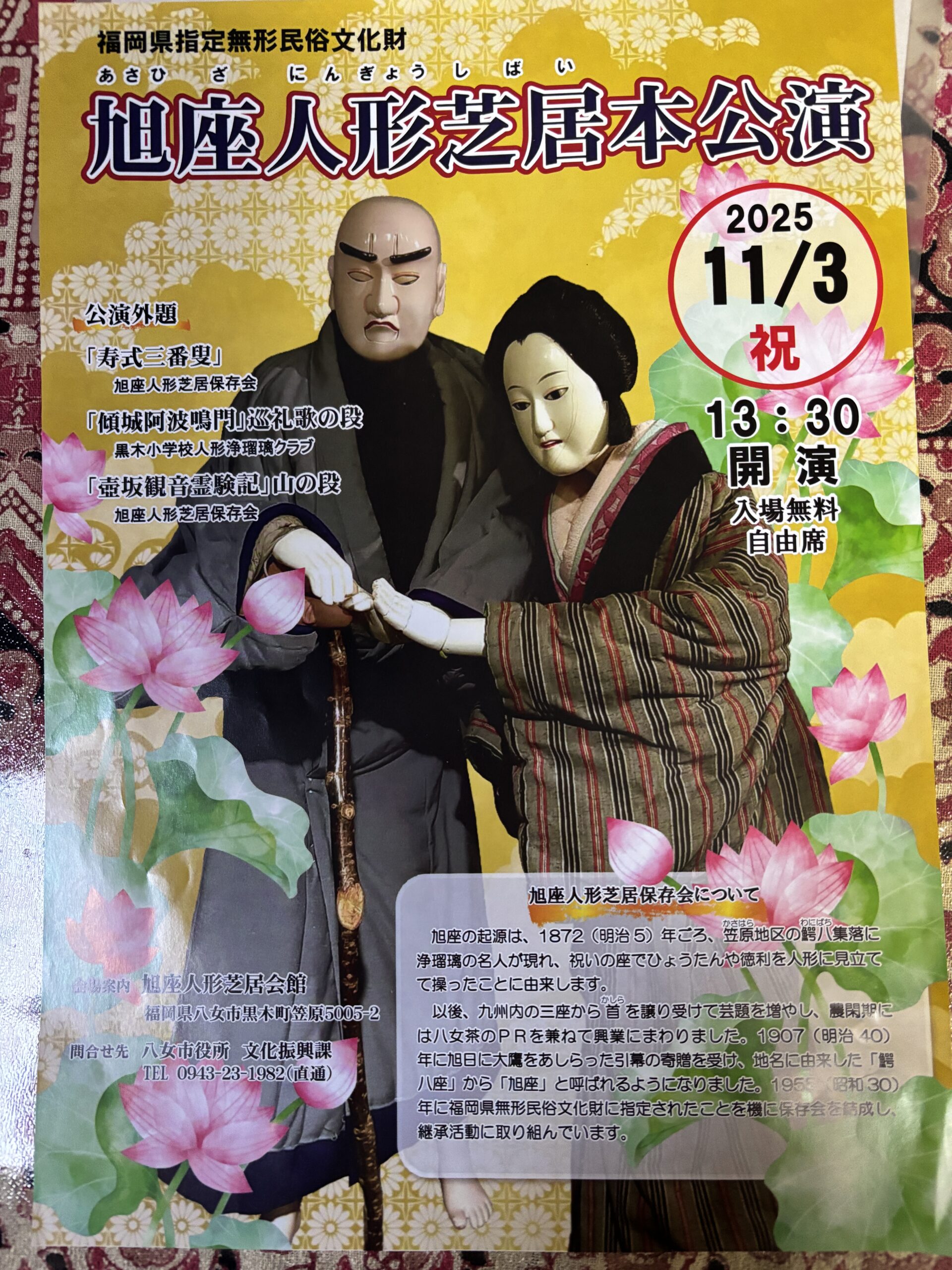 ちょこっと情報→「旭座の起源は、1872(明治5)年ごろ、笠原地区の鰐八集落に浄瑠璃の名人が現れ、祝いの座で、ひょうたんや徳利を人形に見立てて操ったことに由来するそうです。