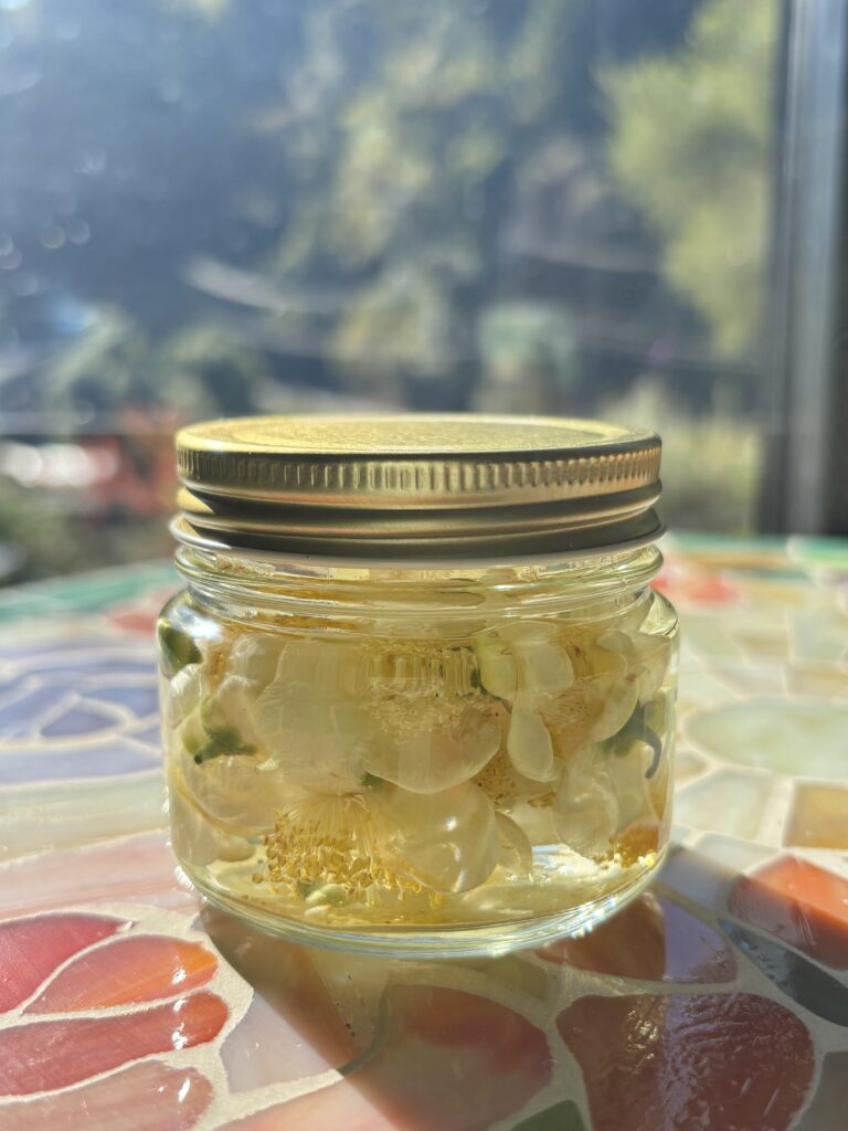 光のお皿に乗ってるような「茶花」 収穫 ティンクチャー出来ました ちょこっと情報→茶の学名はcamellia sinensis(ツバキ科ツバキ属)別名チャノキ 原産中国です。健康機能成分がたっぷり入っています。ティンクチャー(チンキ)とはハーブや生薬などの植物をアルコールに漬けて、有効成分を抽出した液体のことです。 by kogawachi
