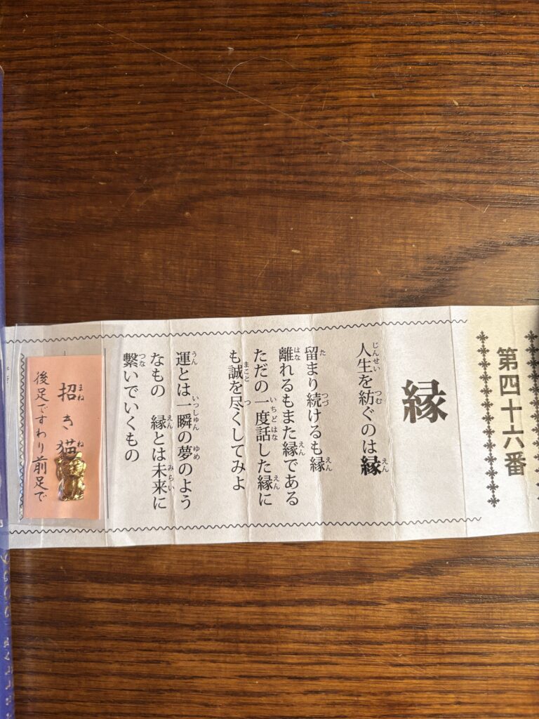 毎年、黒木の津江神社でおみくじを引きます。昨年は熊手でしたが今年は招き猫でした。おみくじに書かれている漢字一文字は昨年は「前」でしたが今年は「縁」でした〜。偶然にも元旦に受け取ったメッセージが「縁」でおみくじも「縁」で驚きです。津江神社の御神木は楠です。神氣を感じます。