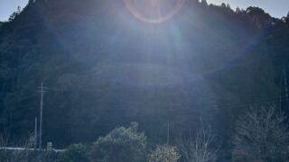 同じ時刻に見た、太陽と月。こんな距離関係だったかしら〜?スピリチュアル的には「陰と陽の統合」、日と月を合わせると明るい❣️「ばけたん」赤とブルーの光!