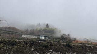 今朝は曇り空、山は寒いのに、まだ咲いている「ど根性コスモス」〜大根の沐浴!メディカルハーブのジュニパーとステビア〜