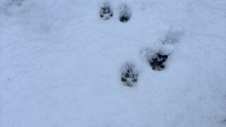 今朝、雪景色〜ティートリーに雪。野生動物の足跡がありました。どんな動物だろ〜⁇